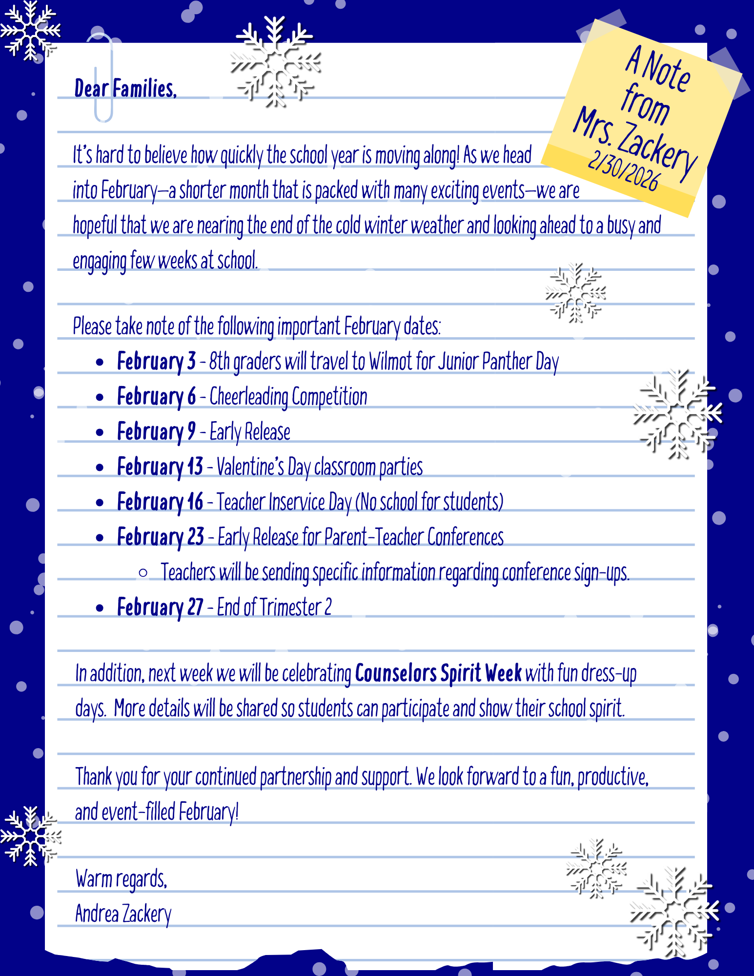 Community Items listed in the "Community Connection" section of the Friday Forecast are provided by 3rd Parties and are not school-sponsored activities.